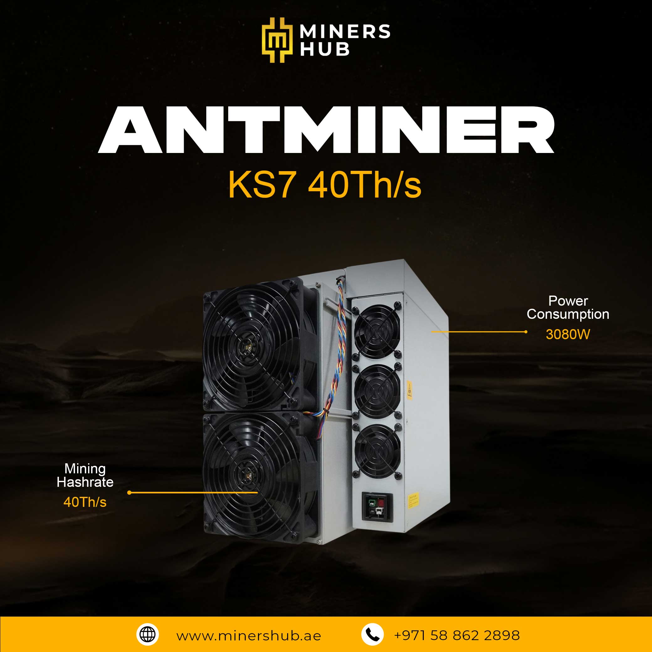 The Antminer KS7 (40 TH/s) is a high‑performance ASIC cryptocurrency miner developed by Bitmain for mining coins based on the kHeavyHash algorithm, most notably Kaspa (KAS). It provides powerful computing performance and strong energy efficiency compared with earlier miners in its class.