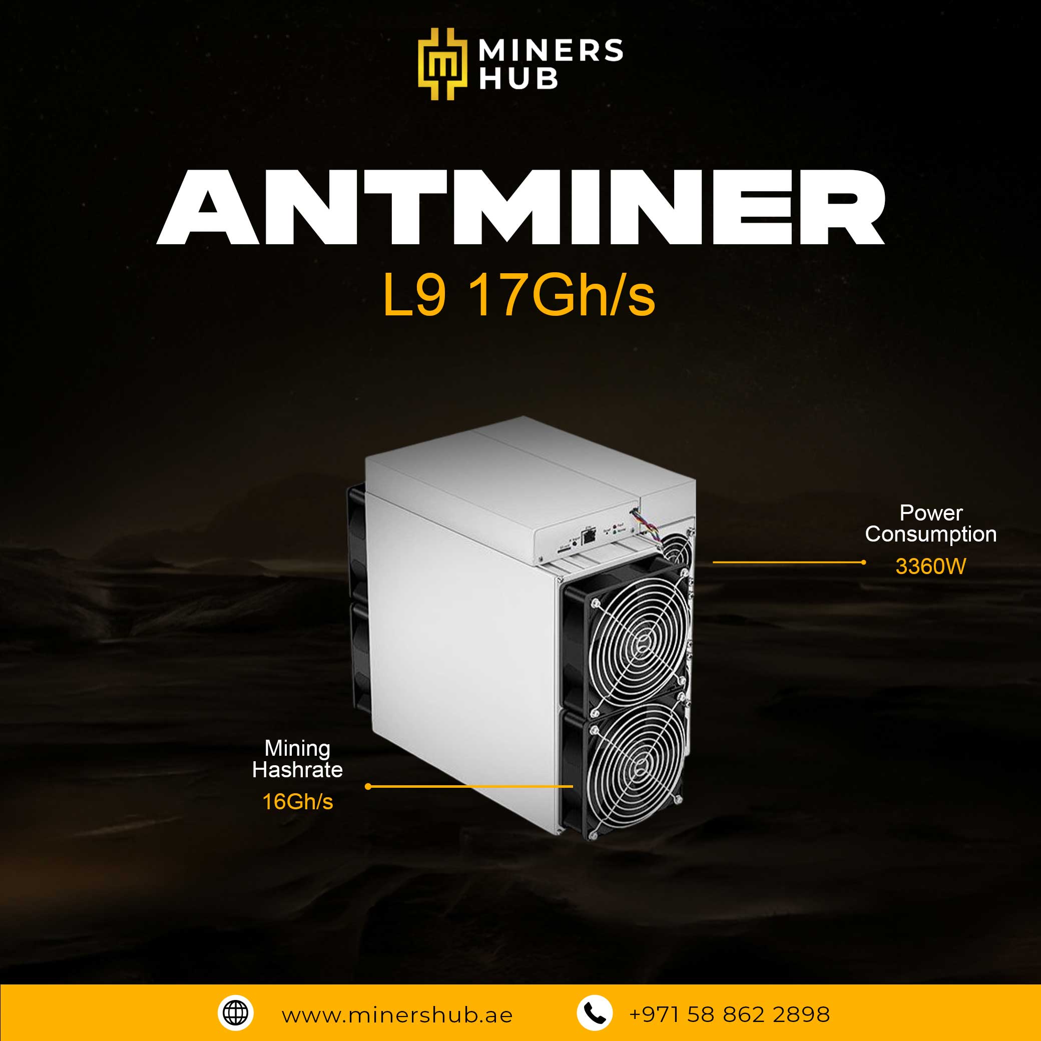 It delivers a strong computational ability with a hashrate of 17 gigahashes per second (GH/s) while maintaining a relatively moderate power draw of ≈ 3360 watts. The miner includes a robust air‑cooling system (multiple fans) to keep the device running safely during 24/7 mining operations. Its build quality and energy efficiency make it suitable for professional and farm‑style mining setups where profitability depends on consistent performance and lower electricity costs.