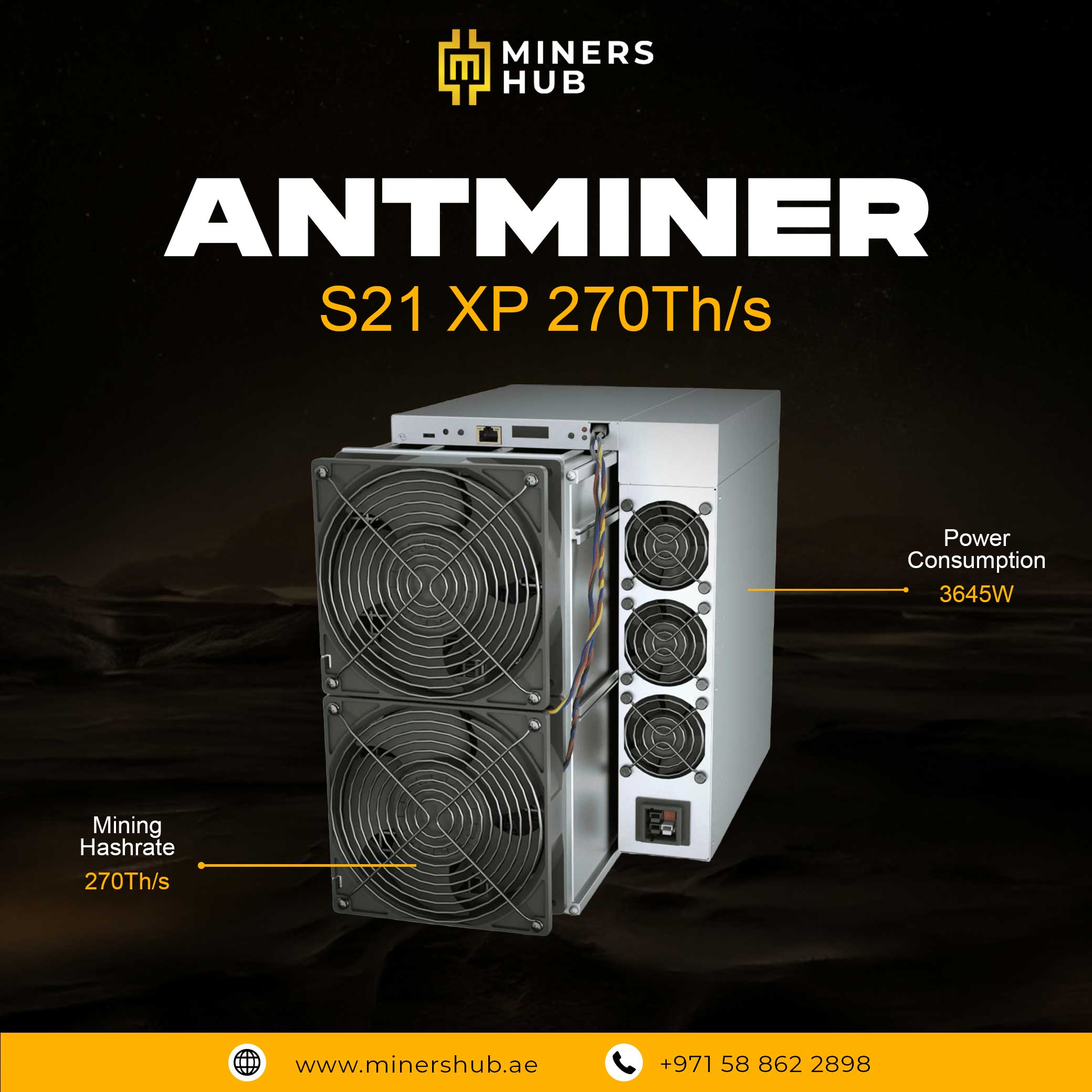 This miner delivers a maximum hashrate of 270 terahashes per second (TH/s), providing extremely high computational power for mining operations. It uses advanced chips and an efficient cooling system to maintain stable performance during continuous mining.